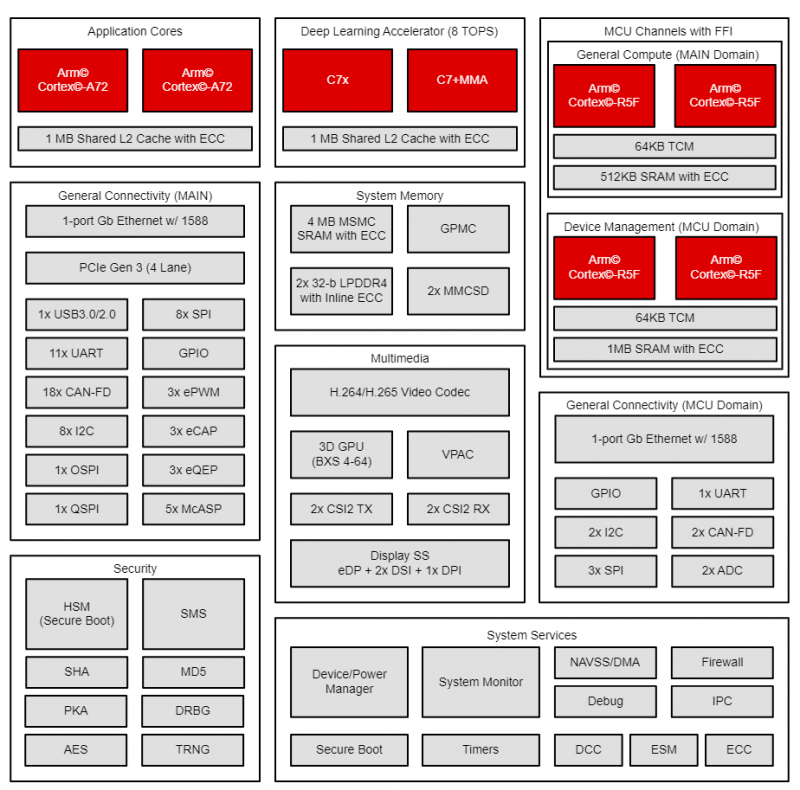 2 GHz (Cortex-A72), 1 GHz (Cortex-R5F) |